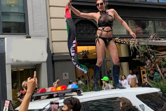 “¡Lo más peligroso aquí fuera es la policía!”, gritó un orador ante un estallido de aplausos. El orador señaló la media docena de patrullas policiales inactivas que rodeaban la protesta. “No hay orgullo en el genocidio”, continuó el orador. Otros oradores subieron al escenario. Vincularon el imperialismo extranjero (usando el ejemplo de Palestina) con las prácticas imperiales domésticas (como las políticas y prácticas policiales anti-negras). La austeridad se mencionó repetidamente, refiriéndose a los recortes presupuestarios que afectan a casi todos los sectores de la vida pública de la ciudad, desde parques hasta escuelas y bibliotecas. Estos recortes incluyeron una asignación de 225 millones de dólares para una instalación de entrenamiento policial. Muchos manifestantes y activistas advirtieron que esto daría paso a la construcción de una “ciudad policial” (cop city) en Nueva York.